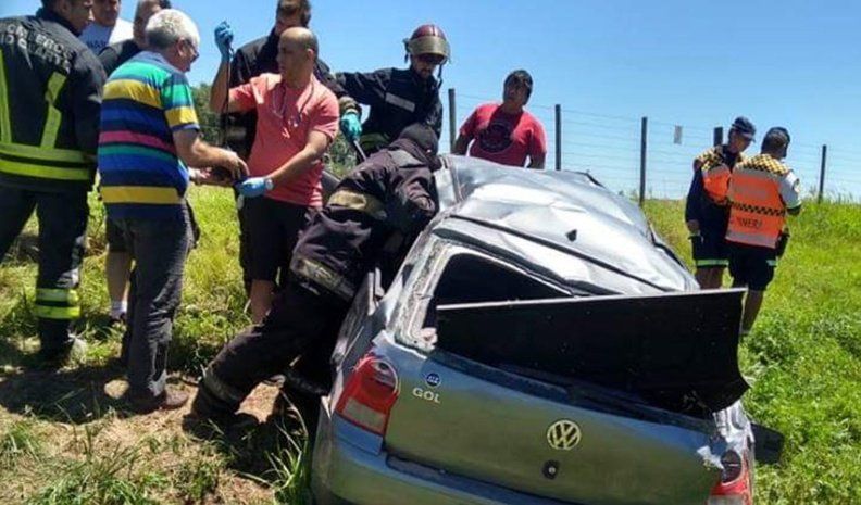 Por causas que son investigadas, cerca de las 12.30, un VW Gol salió de la carpeta asfáltica a la altura del kilómetro 613 y dio un tumbo, señalaron fuentes policiales.
