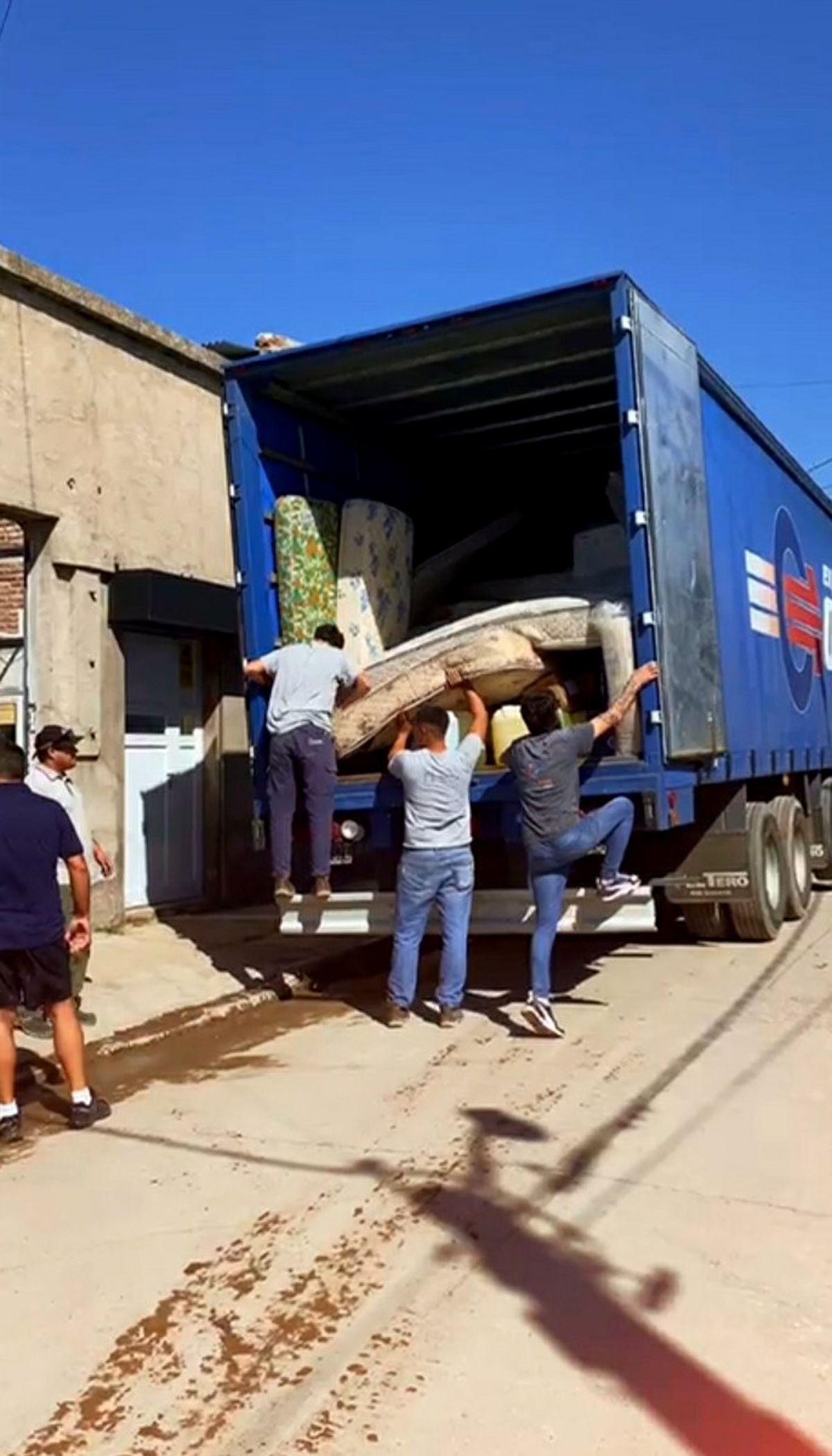 Un camión con acoplado repleto de donaciones descargó alimentos, agua mineral, lavandina, frazadas y útiles en dicha ciudad azotada por las inundaciones.