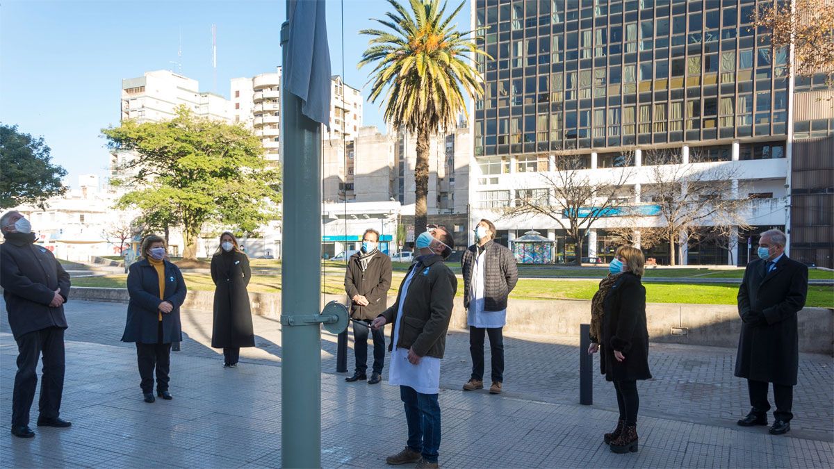 En paralelo, otros 70 trabajadores y trabajadoras de la salud izaron la bandera argentina en los mástiles ubicados en más de 50 espacios públicos distribuidos por toda la ciudad.