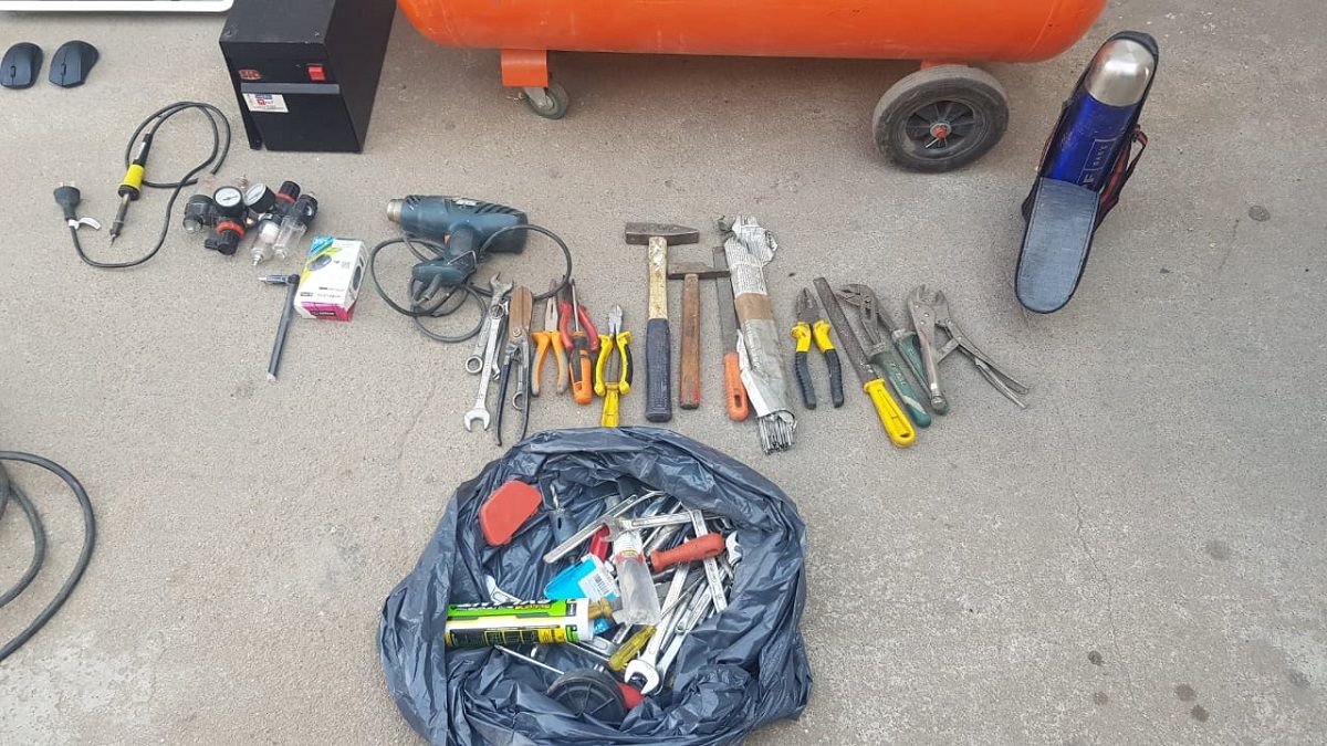 El operativo se desarrolló en la calle Salta al 100, y allí fueron secuestrados: un compresor, una máquina de soldar, un televisor, un monitor, dos parlantes, un estabilizador, herramientas, entre otras herramientas.