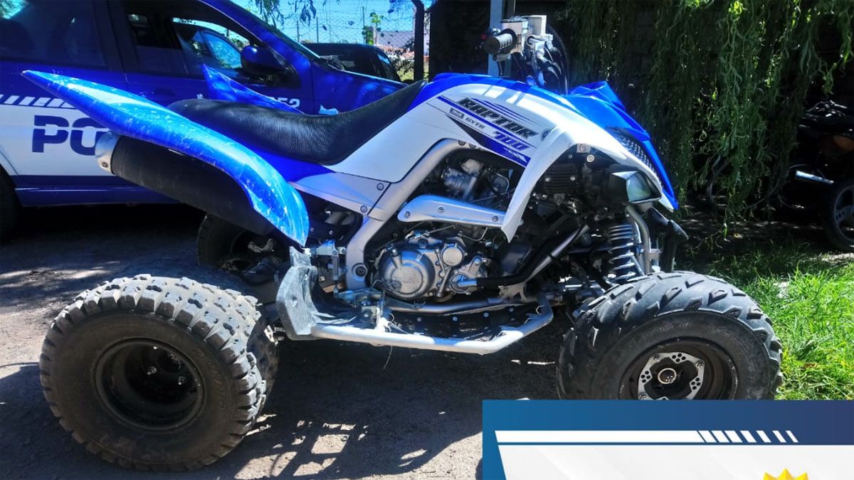 Un cuatriciclo que había sido robado en una vivienda de barrio Nuevo Bimaco, fue secuestrado en las últimas horas durante un procedimiento desarollado en la zona de barrio Fénix.