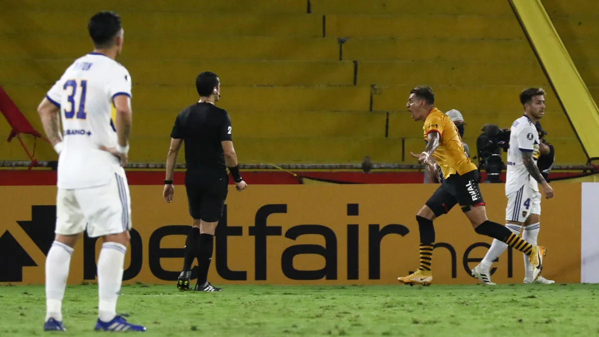 El equipo de Miguel Ángel Russo, que no pudo tener en el arco a Esteban Andrada por ser positivo en coronavirus, manejó mejor que su rival el encuentro, con buena producción individual y colectiva pero que no tradujo en la red, y en el complemento un gol conquistado por Carlos Garcés le dio la victoria a los ecuatorianos, lo que les posibilitó quedar como únicos punteros en su zona.