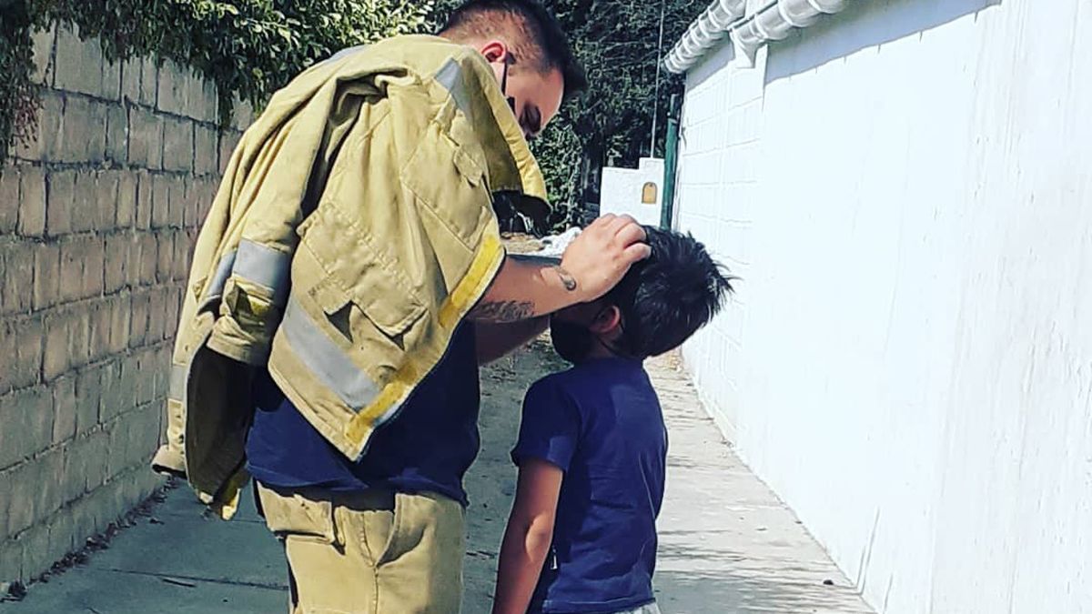 Romina Quiroga, la esposa de Valeriano Ferreyra, jefe del cuartel de Bomberos de Alpa Corral, compartió una imagen del reencuentro del hijo de ambos, Mateo, en uno de los pocos momentos de descanso que tuvo el voluntario.