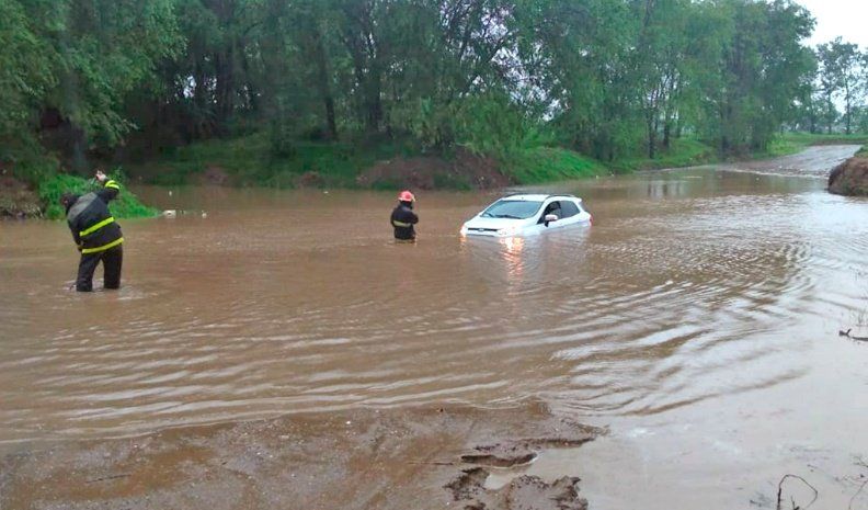 Un vehículo en el que se trasladaba una pareja de Coronel Moldes debió ser rescatado por personal de Bomberos de General Cabrera al quedar varado en el agua en la intersección de dos caminos rurales de la localidad del departamento Juárez Celman.