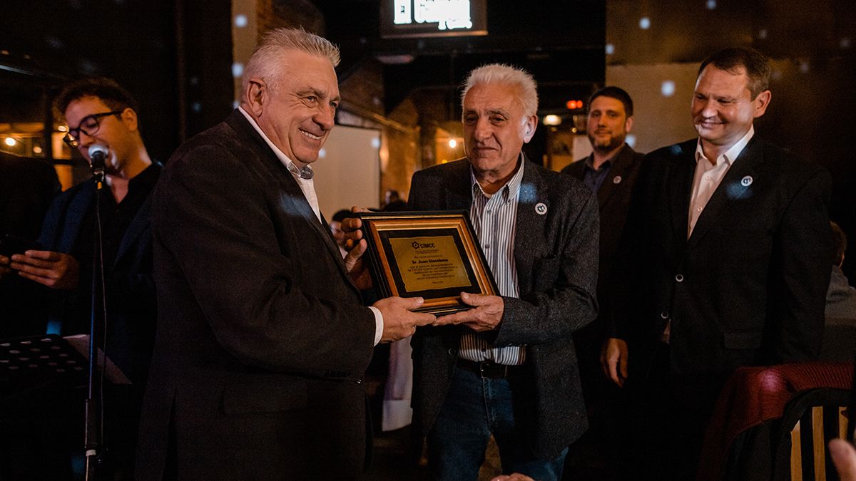 Dentro de los momentos más emotivos de la noche se vivió la invitación del presidente actual al presidente mandato cumplido Juan Giacobone para realizar el brindis y para recibir una placa homenaje a su labor, la que fue entregada por Gustavo del Boca, presidente de la CIMCC.