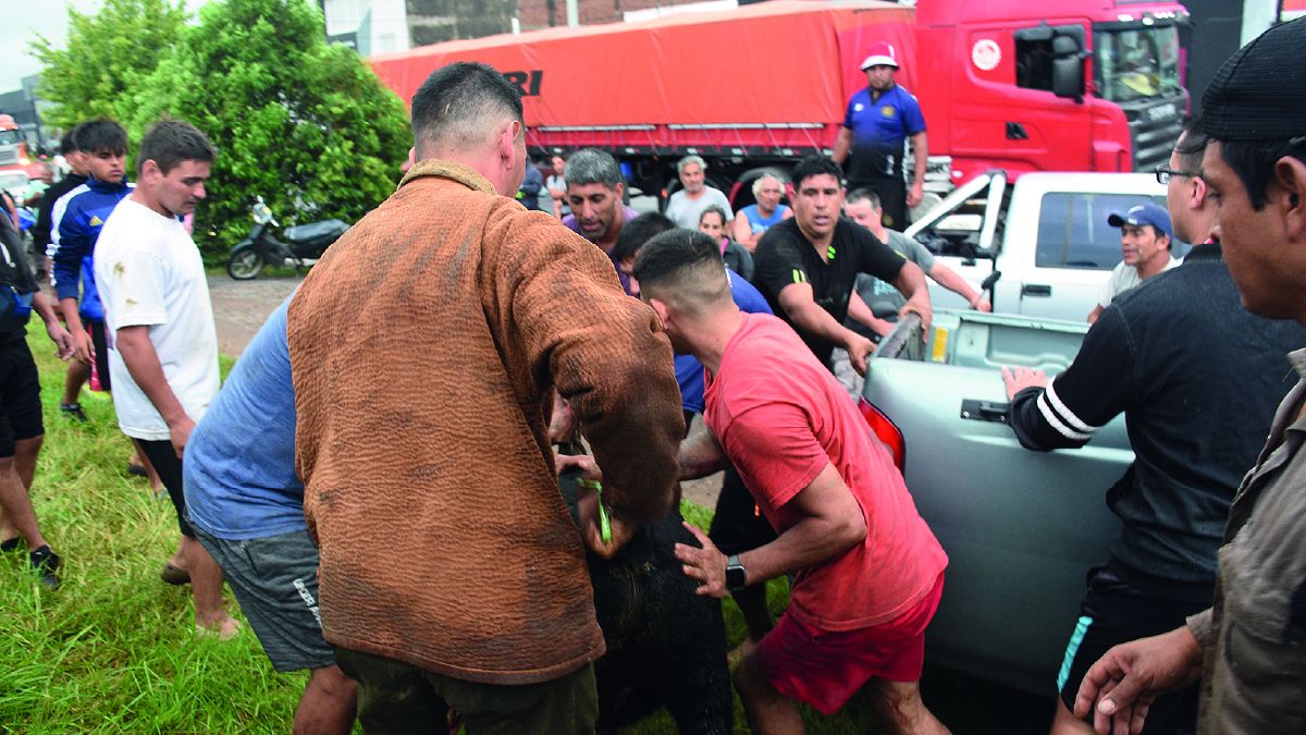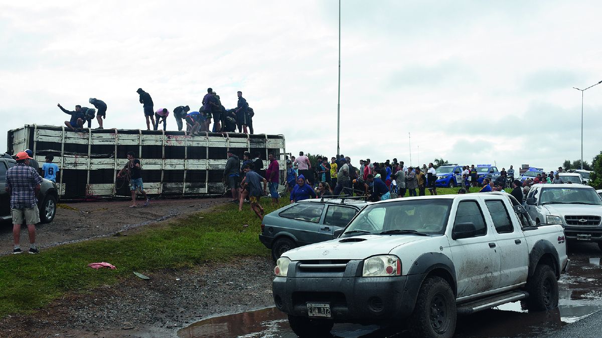 Los animales trasladados era en total 102, de los cuales 73 iban en el acoplado de doble piso. Cerca de 40 fueron saqueados por vecinos de la zona.