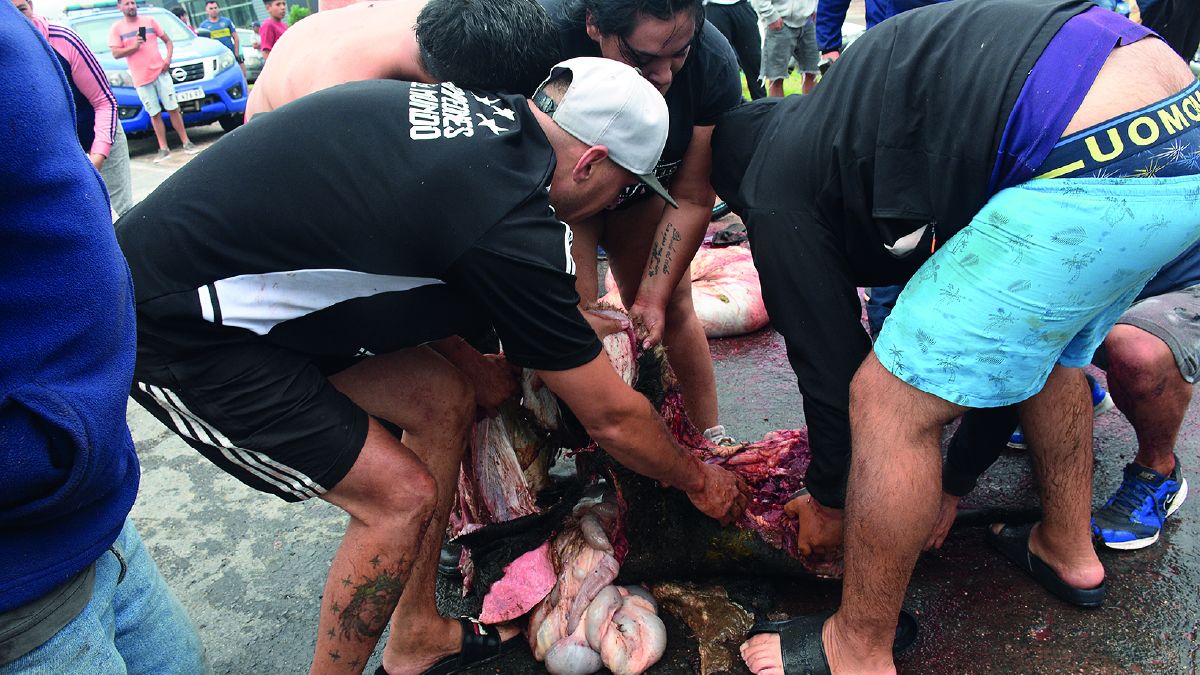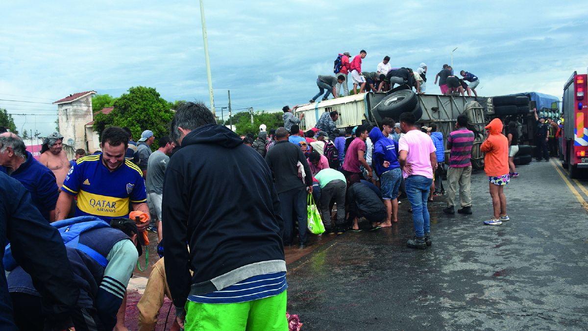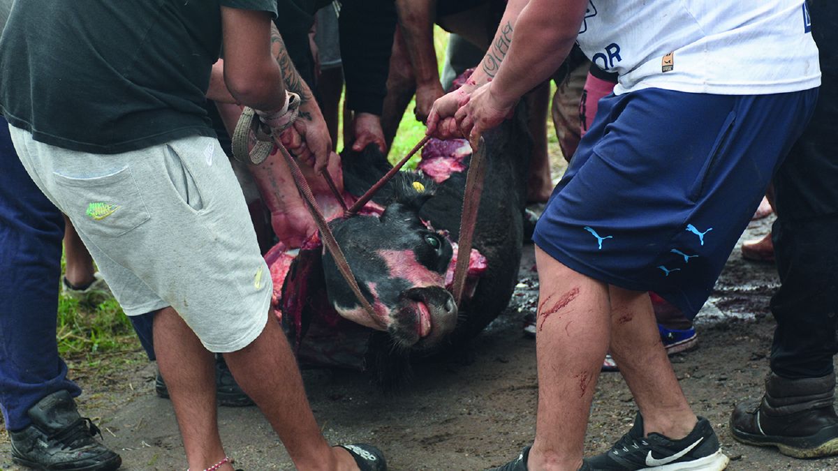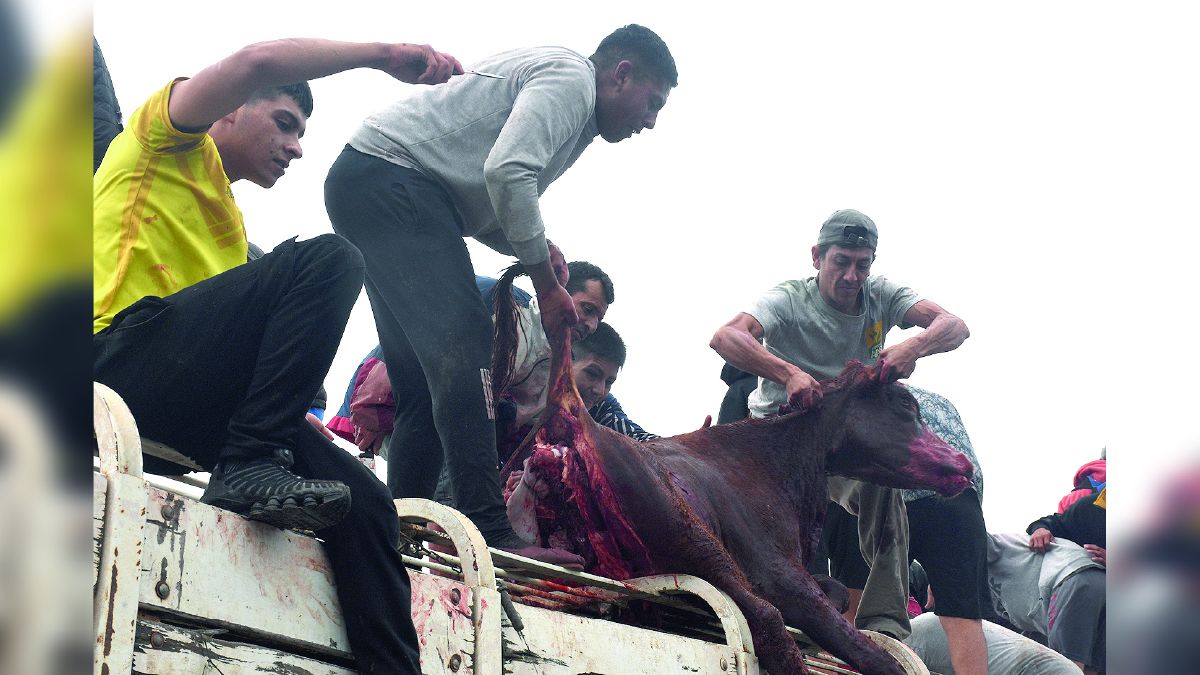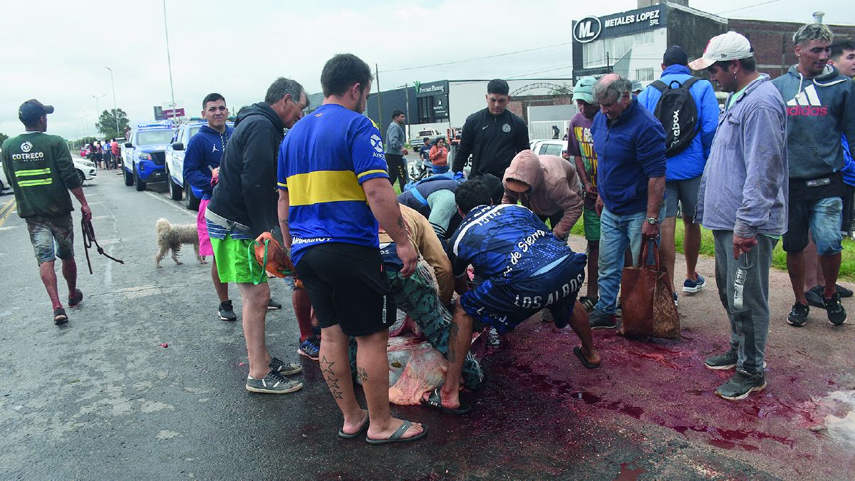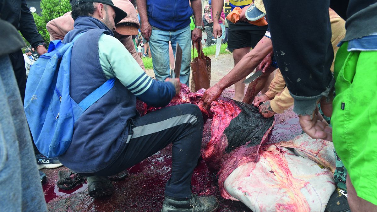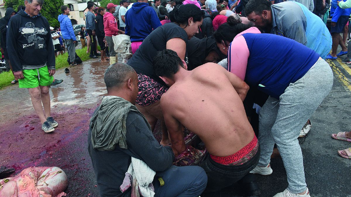 Según testigos del hecho, alrededor de 400 personas se aproximaron al lugar del vuelco para faenar los animales y llevarse la carne.