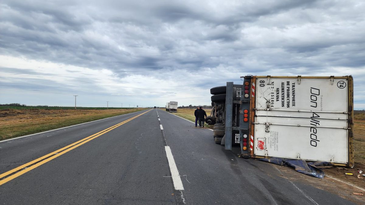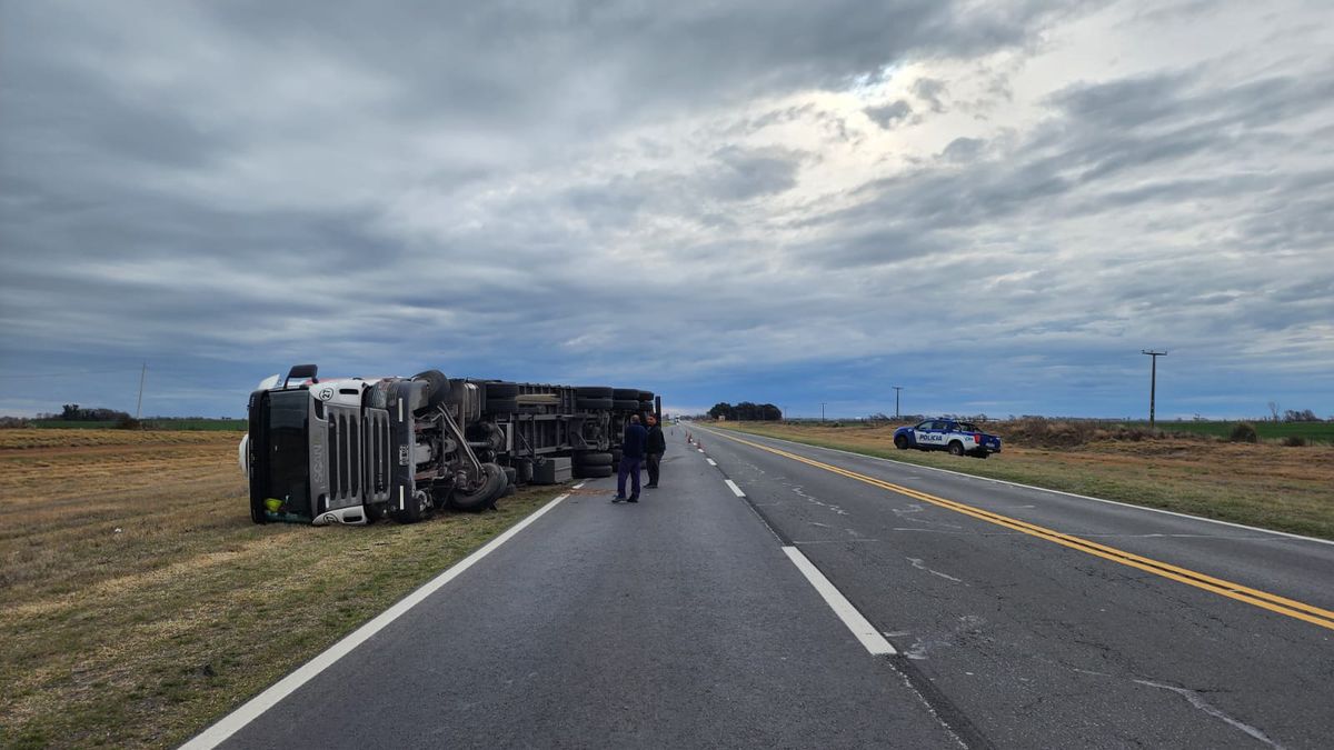 Alrededor de las 17.40 de este lunes se registró el vuelco de un camión con semirremolque en ruta nacional 7, a la altura del kilómetro 613, en proximidades a Vicuña Mackenna.