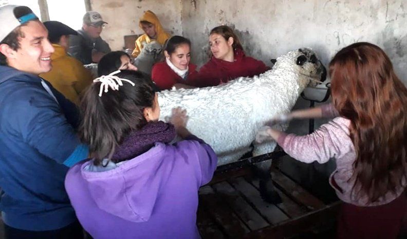 Los alumnos y los profesores, desde horas muy tempranas, bañaron durante las dos semanas de vacaciones a los animales que viajaron este lunes a Palermo, para luego, estar cumpliendo con el escardado de cada uno, una especie de acicalado o peinado de la lana del animal.