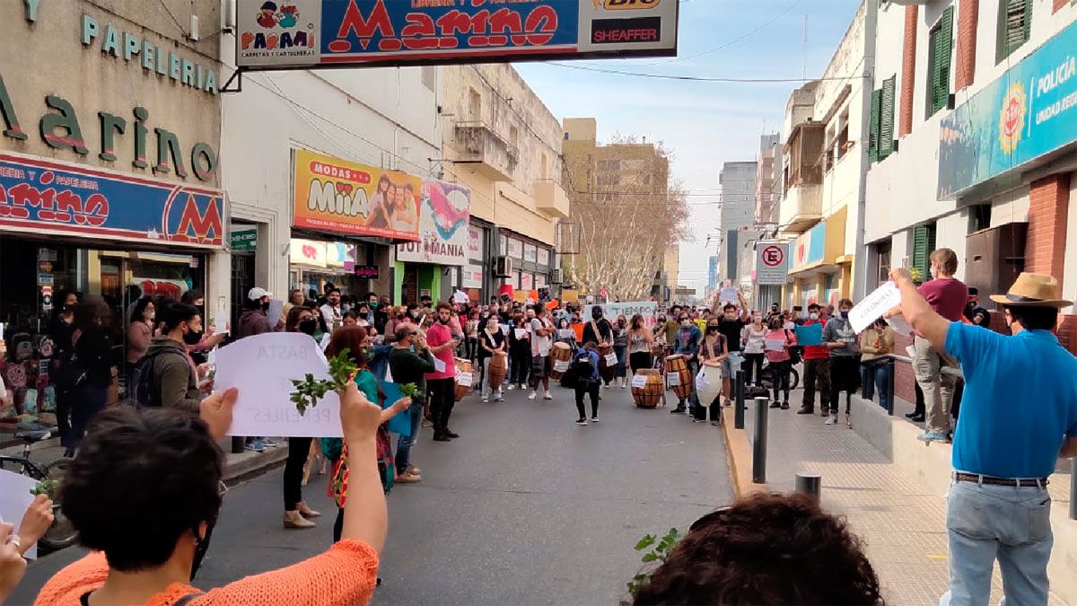 A poco de partir, hicieron un alto en la sede de Tribunales, donde dirigieron un reclamo al fiscal de la causa, Pablo Javega, para que desvincule a Marclé, quien aseguran es completamente inocente. Más tarde, luego de recorrer parte del centro de la ciudad, se manifestaron frente a la Jefatura de Policía.