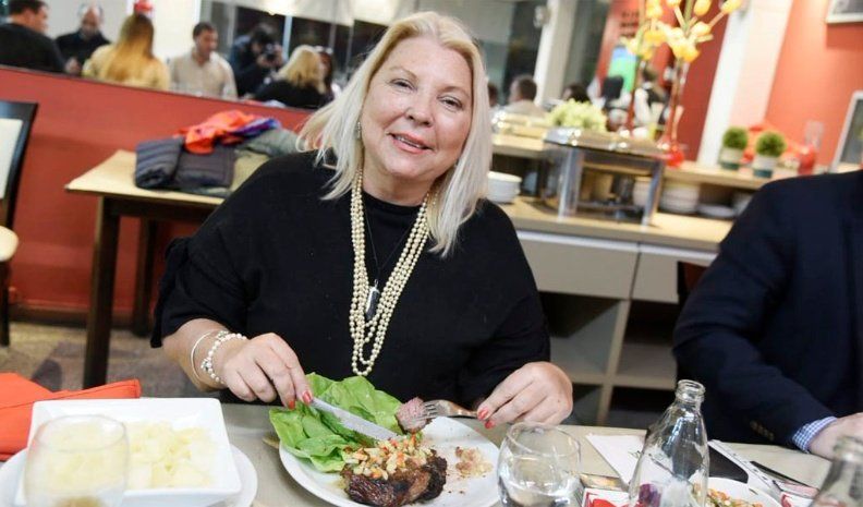 Carrió difundió una fotografía suya en un restorán con el mensaje "qué chistoso este bife de chorizo", al tiempo que mencionó al jefe de Gabinete, Marcos Peña, y al jefe del interbloque de Cambiemos de la Cámara baja, Mario Negri.