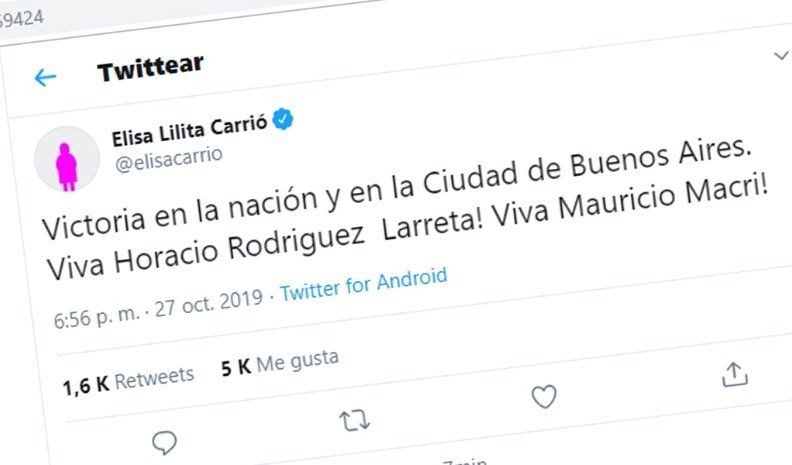 — Elisa Lilita Carrió (@elisacarrio) October 27, 2019
