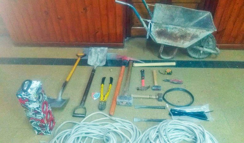Además, precisaron que se les secuestró en su poder una carretilla, tres masas, un pico, un parlante portátil, una cinta métrica, dos cortafierros, dos palas, un rollo de alambre, pinzas, sogas y demás elementos de construcción, como así también el carro de un eje en el que se movilizaban y el caballo que lo tiraba.