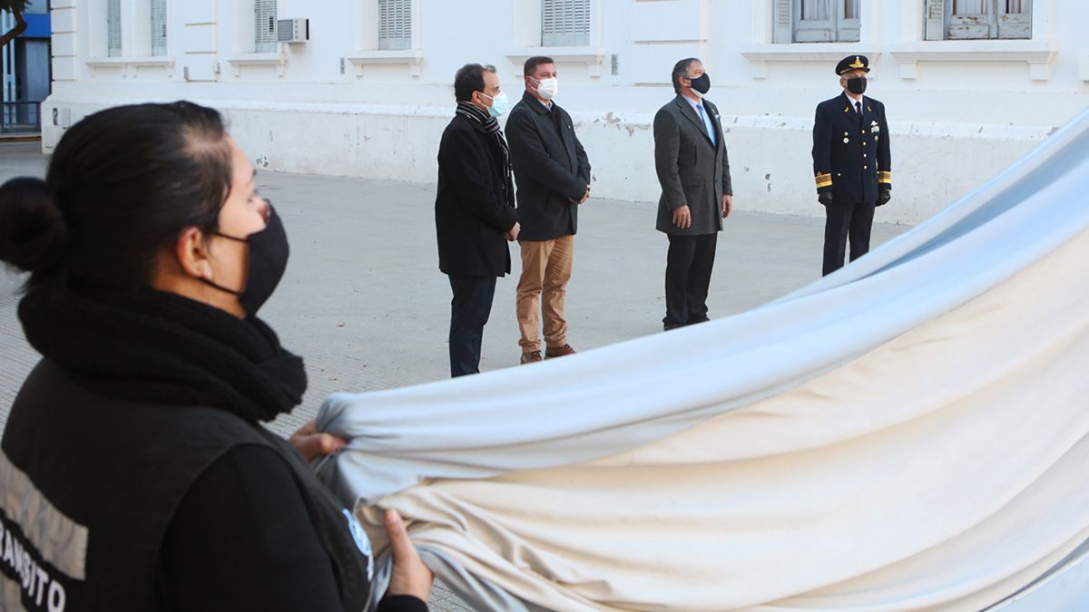 En el austero acto por la pandemia estuvieron presentes el presidente del Concejo, Darío Fuentes; el delegado del Ministerio de Seguridad, Roberto Koch;y la secretaria de Educación, Mercedes Novaira,entre otros.