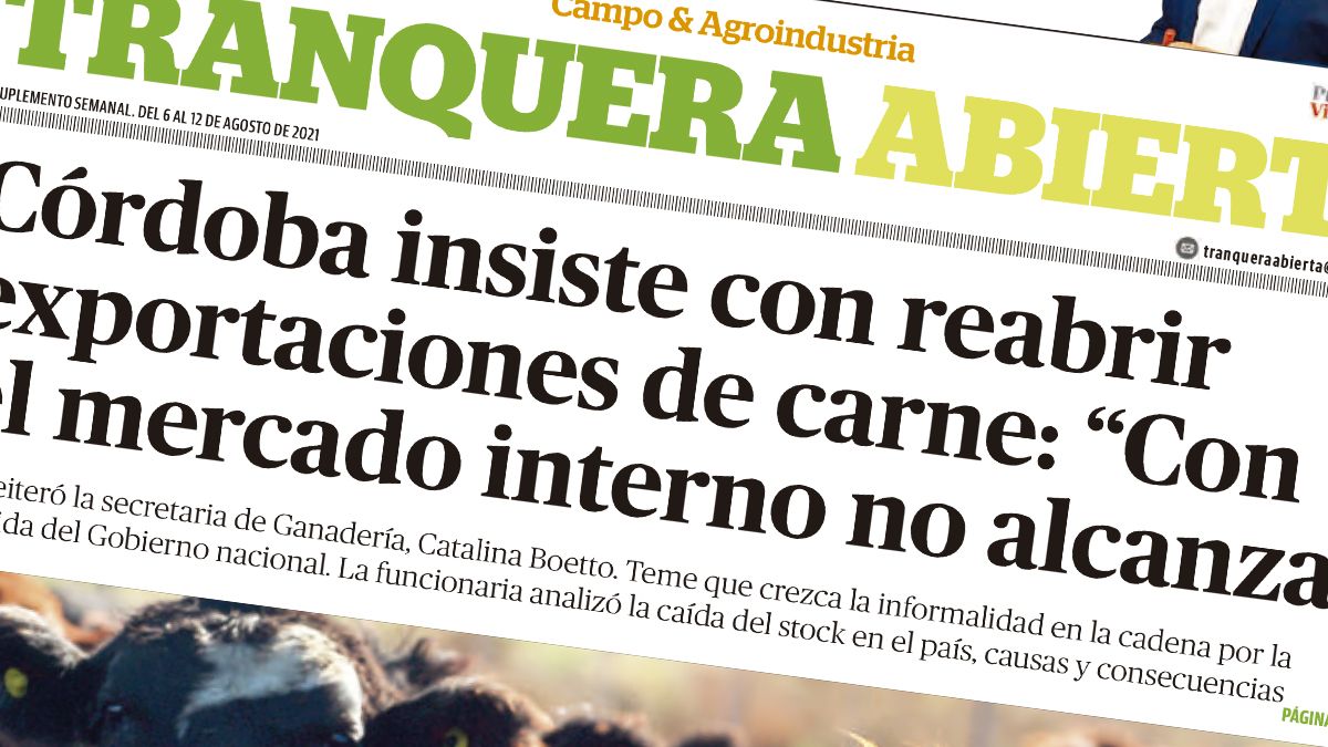 Entre los principales títulos de hoy se detaca que Córdoba insiste con reabrir exportaciones de carne, así lo reiteró la secretaria de Ganadería, Catalina Boetto. Teme que crezca la informalidad en la cadena por la medida del Gobierno nacional. Además la funcionaria analizó la caída del stock en el país.