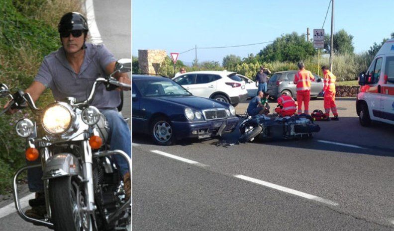 La policía informó que Clooney manejaba la moto solo, cuando un auto lo chocó y el actor terminó en el capó del vehículo. De urgencia, Clooney fue llevado al hospital "Giovanni Paolo II" en Olbia, donde se le realizó una tomografía axial computarizada.