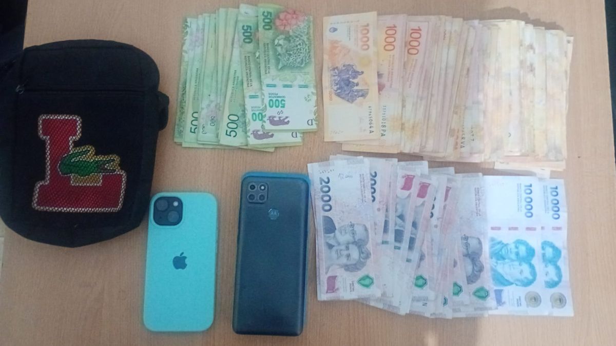 Durante la huida arrojaron un morral que contenía dos teléfonos celulares de alta gama (iPhone y Motorola) y una suma de $287.000 en efectivo, pero de todos modos ambos fueron interceptados a pocos metros del lugar, y se procedió al secuestro de los elementos por averiguación de procedencia.
