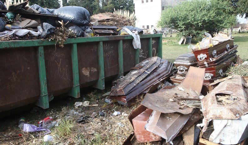 Por otra parte, se quejaron por la obra inconclusa de un paredón que impediría el contacto de un parque para niños con la pila de ataúdes que esperan ser retirados del Cementerio.