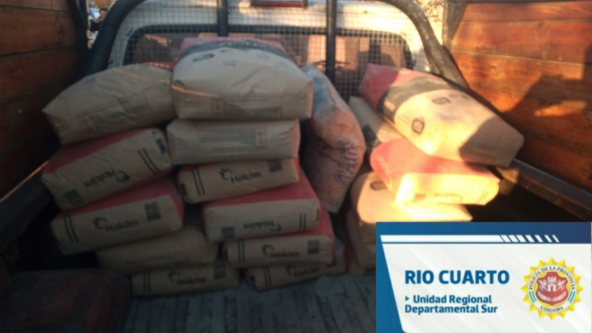 En bulevar Circunvalación Oeste al 1900 (paralela de la ruta A005), la Policía logró interceptar una camioneta Ford F100 que era conducida por un hombre de 38 años, quien no pudo justificar la carga de 16 bolsas de cemento, que habría sustraído del galpón del barrio Roque Sáenz Peña.