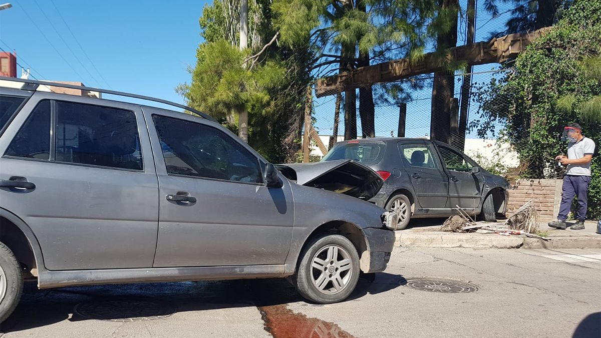 Dos automóviles chocaron en inmediaciones de calles San Lorenzo y Rivadavia, y como consecuencia de la colisión uno de los rodados impactó contra un paredón.