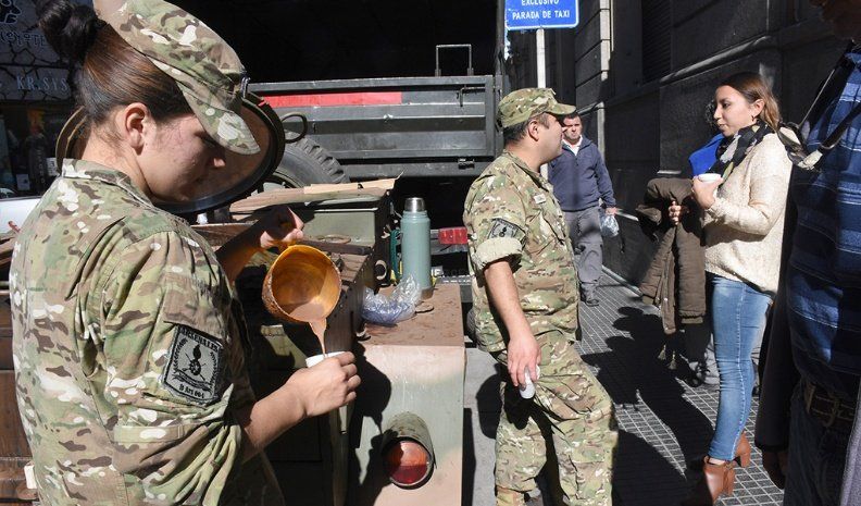 Por iniciativa de una empresa privada que abrió un nuevo local en pleno microcentro, este jueves el Ejército Argentino de nuestra ciudad elaboró chocolate caliente para mil personas.