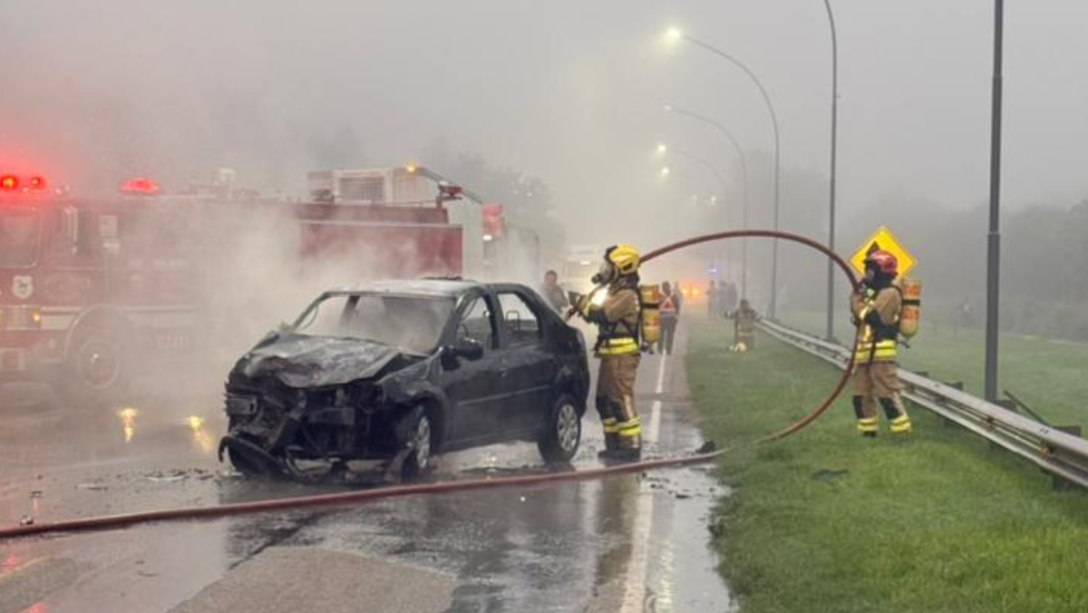 Producto de la violencia del impacto, el Renault Logan se incendió por completo, lo que obligó a las autoridades a interrumpir el tránsito de manera total durante aproximadamente una hora para permitir el trabajo de los servicios de emergencia y bomberos.