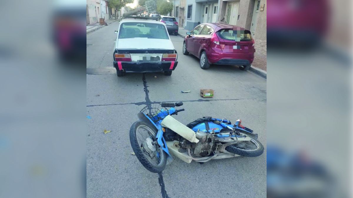 El choque ocurrió en la intersección de calles Belgrano y San Lorenzo y fue protagonizado por un Renault 12, conducido por un hombre de 65 años de edad, y una motocicleta Guerrero Econo 90 cc conducida por un hombre de 75 años, quien resultó con heridas que motivaron su trasladado al Hospital San Antonio de Padua.
