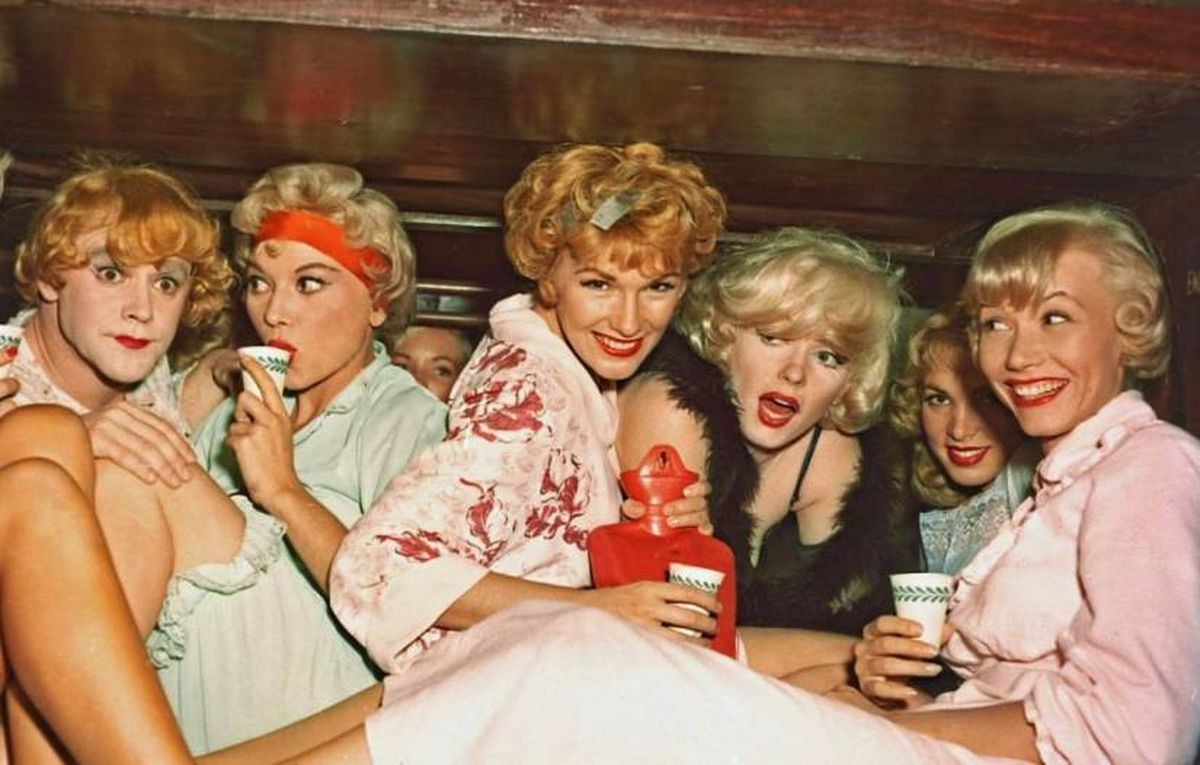 Sinopsis: Joe y Jerry son dos músicos que se ven obligados a huir después de ser testigos de un ajuste de cuentas entre dos bandas rivales, durante la época de Ley Seca. Como no encuentran trabajo y la mafia los persigue, deciden vestirse de mujeres y tocar en una orquesta femenina.