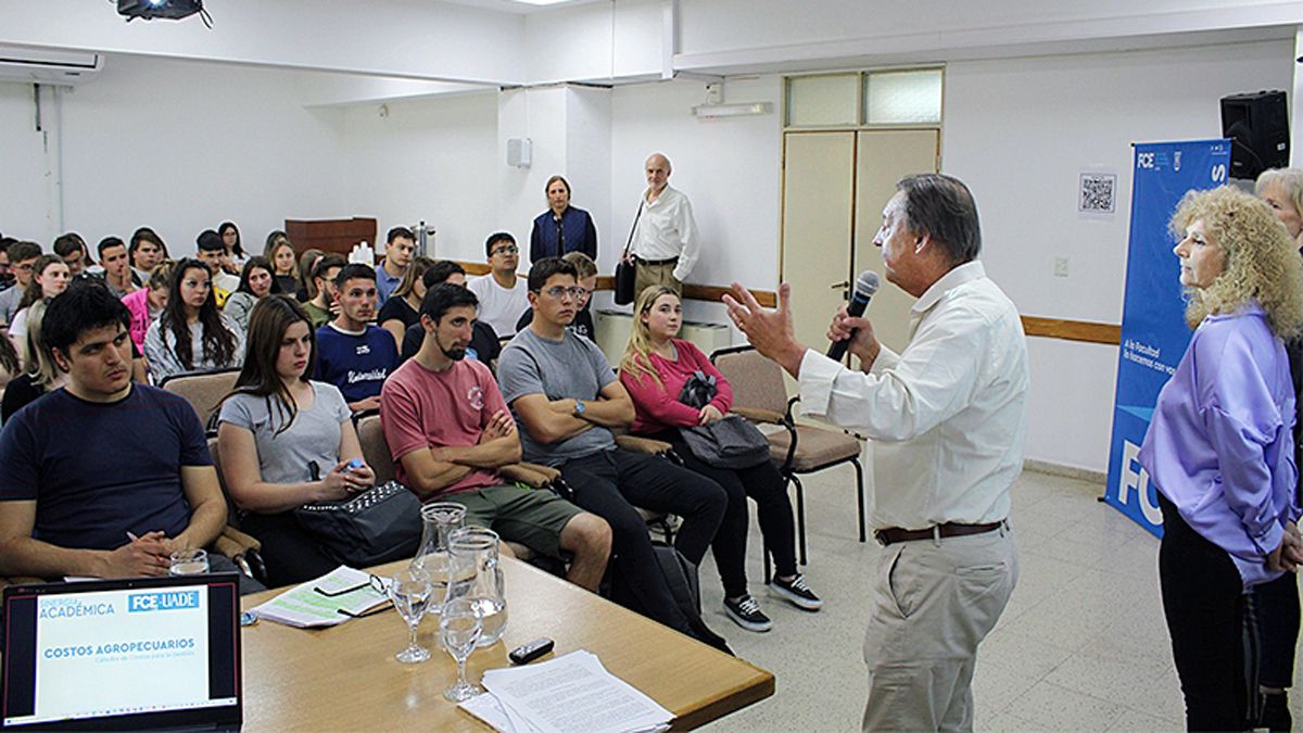 El día martes 11 de octubre se dictó la primera de cuatro clases teórico-prácticas de Costos Agropecuarios, en el Aula Magna de la FCE. Asistieron a la misma, en forma presencial, los estudiantes que cursan la materia de la FCE y de manera remota, tanto los estudiantes de la modalidad a distancia de FCE como los estudiantes y miembros de la UADE.