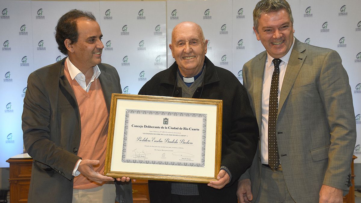 El padre Eusebio Barbero, creador de La Ciudad de los Niños, fue distinguido ayer como Ciudadano Ilustre de Río Cuarto, en una emotiva sesión que el Concejo Deliberante organizó en el Viejo Mercado y que contó con la presencia de distintas personalidades de la política, la Iglesia, las instituciones y de los chicos y trabajadores que forman parte de la organización que trabaja desde el año 1988 en la ciudad.