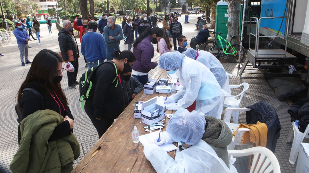 Crece la cantidad de jóvenes, con síntomas de Covid-19 o sin ellos, que hacen cola en los operativos Identificar, que se hacen en los barrios y paseos de la ciudad, o en el Galpón Blanco de El Andino para testearse.