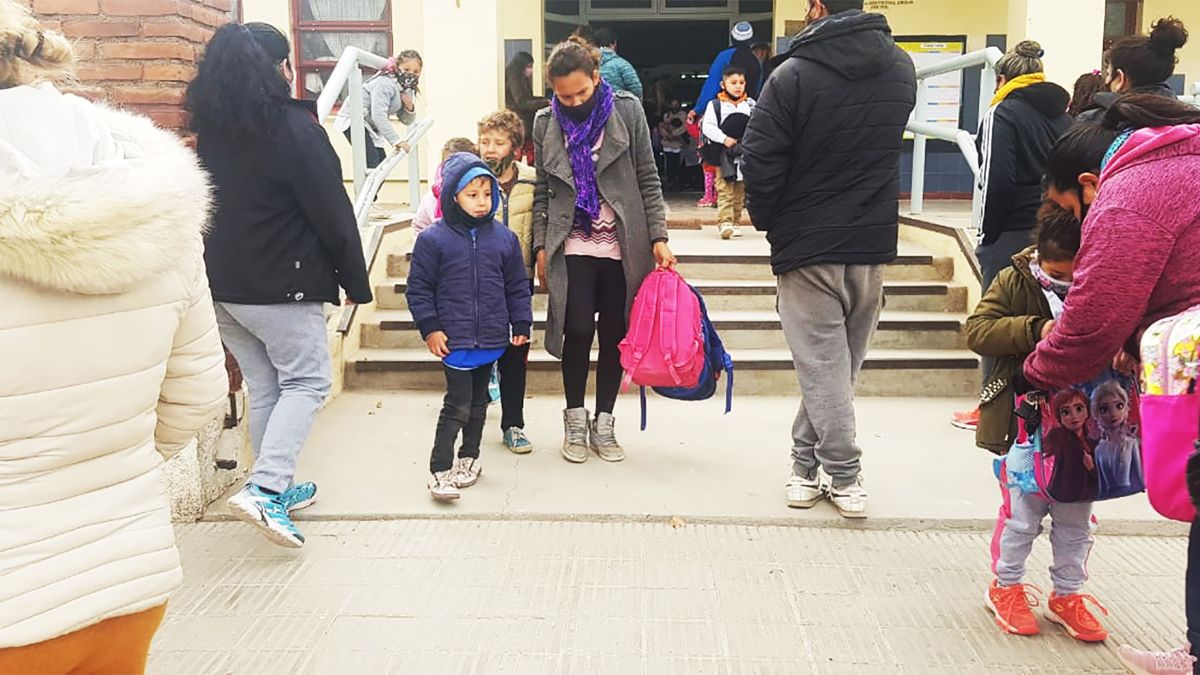 Los niños fueron acompañados por sus padres hasta la puerta de las escuelas y luego éstos los fueron a retirar, haciéndose observar las medidas sanitarias vigentes por la pandemia del Covid-19.