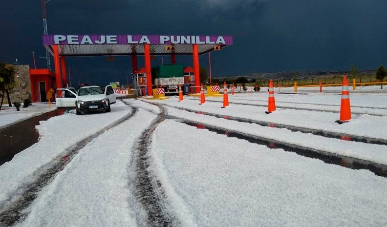 "La piedra cayó principalmente sobre la ruta, a la altura de los peajes", señaló personal que se encontraba de turno en esas estaciones al momento de la precipitación sólida.