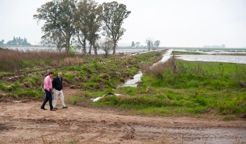 Rozas Garay recorrió las obras iniciadas semanas atrás en inmediaciones de la laguna La Blanqueada, próxima a Arias, mientras que en Guatimozín analizó la situación de los caminos anegados.