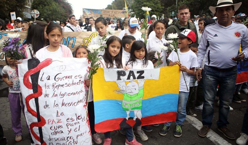 La mayoría de los hombres, mujeres y niños que marcharon en Bogotá y las principales ciudades del país eligieron vestirse con remeras blancas, algunos enfundados con la bandera nacional y con flores y globos blancos en las manos.
