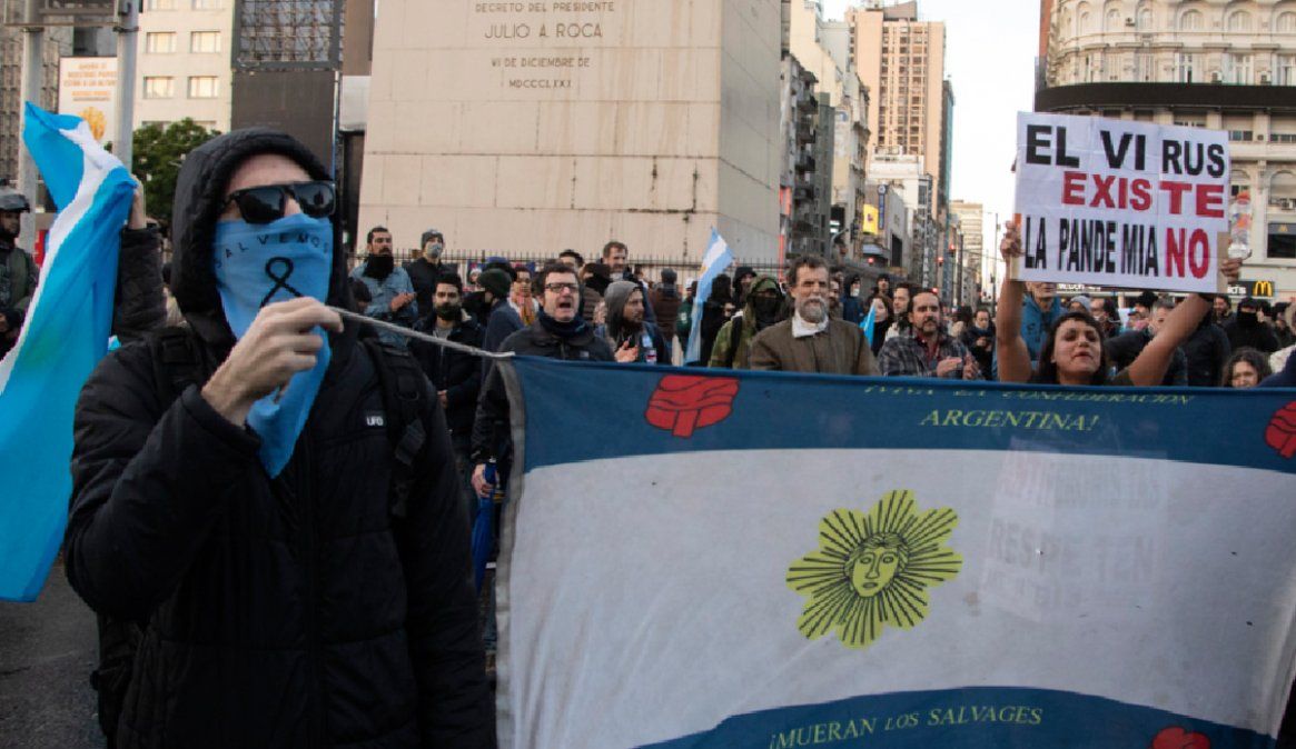 Entre esos manifestantes hubo algunos simpatizantes del dirigente de extrema derecha Alejandro Biondini y personas que creen que la pandemia es parte de una conspiración para imponer un "nuevo orden mundial", poniendo en duda la existencia del coronavirus.