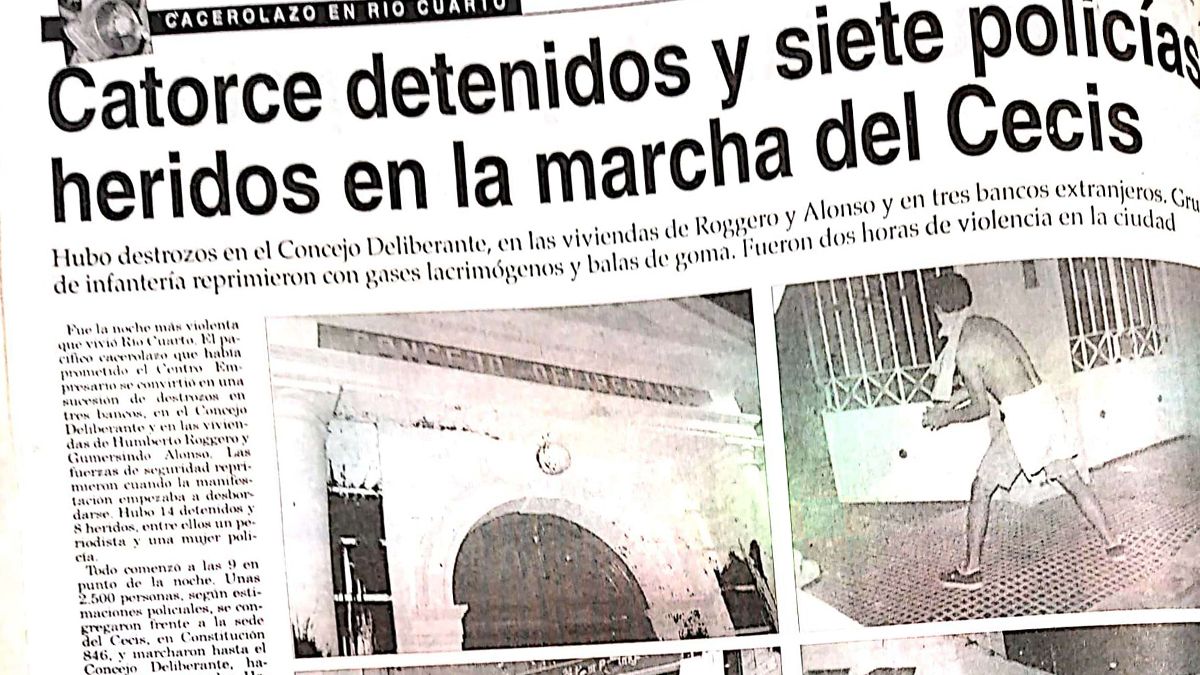 -Yo no estuve en Río Cuarto en 2013. Por lo general, las huelgas policiales impactan en las grandes ciudades. Creo que en 2013 todo se concentró en Córdoba capital. En 2001 hubo un momento de mucha tensión. Se hizo mucha prevención, sobre todo en los supermercados. Lo más difícil fue el ataque en el Concejo, donde hubo algunos detenidos y heridos leves. Nunca hubo represión violenta ni mucho menos. El clima social era raro.