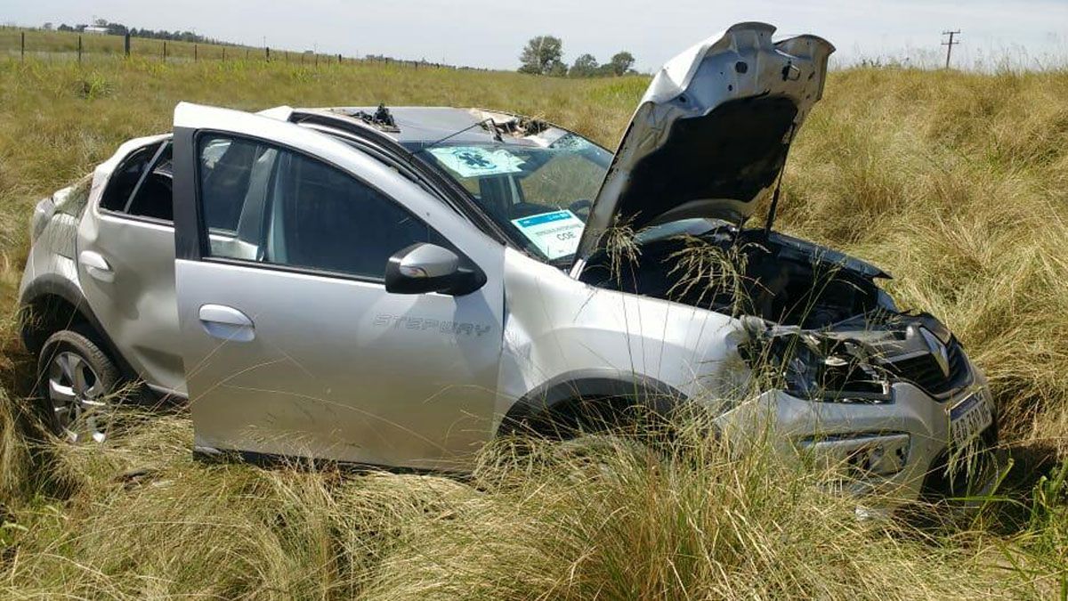 Por causas a establecer, el automovilista de 47 años perdió el control de su automóvil, un Renault Sandero, despistó y volcó.