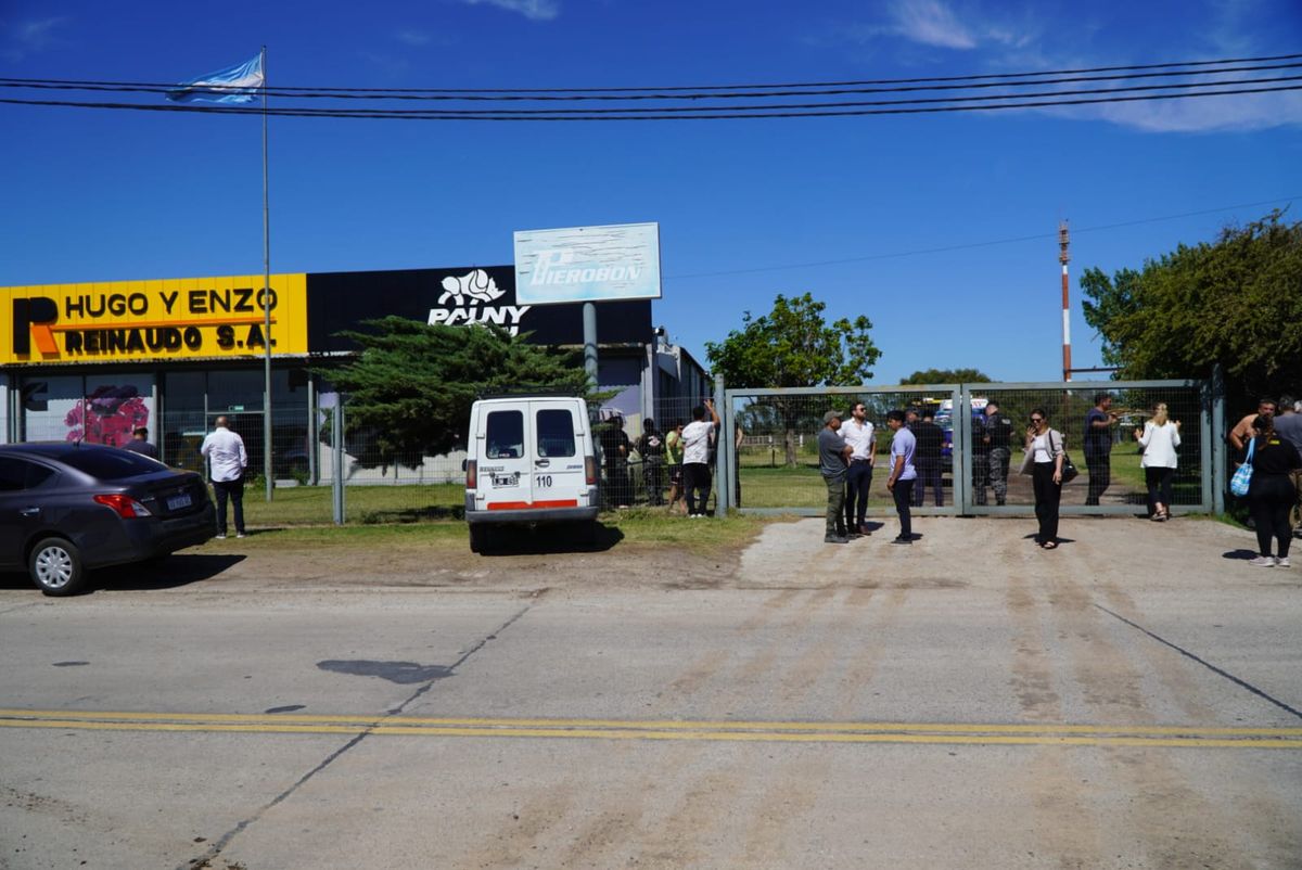 Durante la mañana de este jueves, trabajadores de la empresa Reinaudo S.A. desarrollan una protesta tras denunciar la falta del pago de haberes desde hace dos meses.