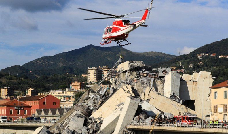 Una treintena de personas perdieron la vida y numerosas resultaron heridas en Génova. Unos 30 vehículos se vieron afectados y algunos cayeron al vacío desde 45 metros