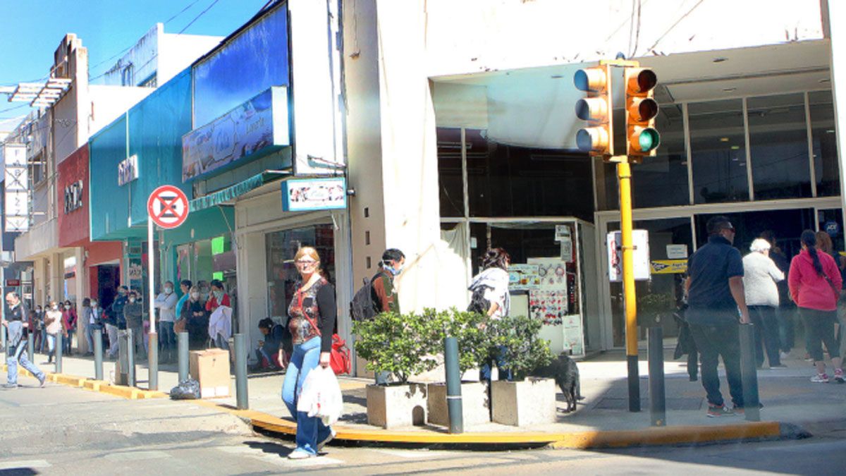 En medio de la cuarentena, hubo ayer mucho movimiento de gente en el microcentro de la ciudad.