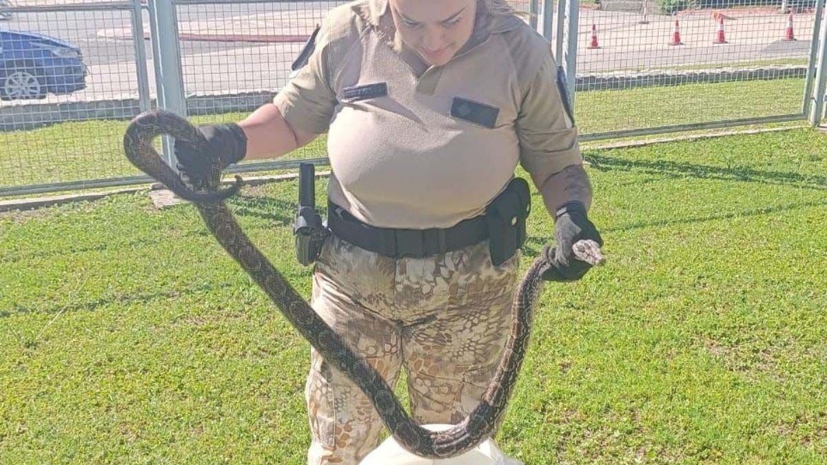 Apareció una boa constrictora en la ciudad de Córdoba y fue rescatada por la Patrulla Ambiental.