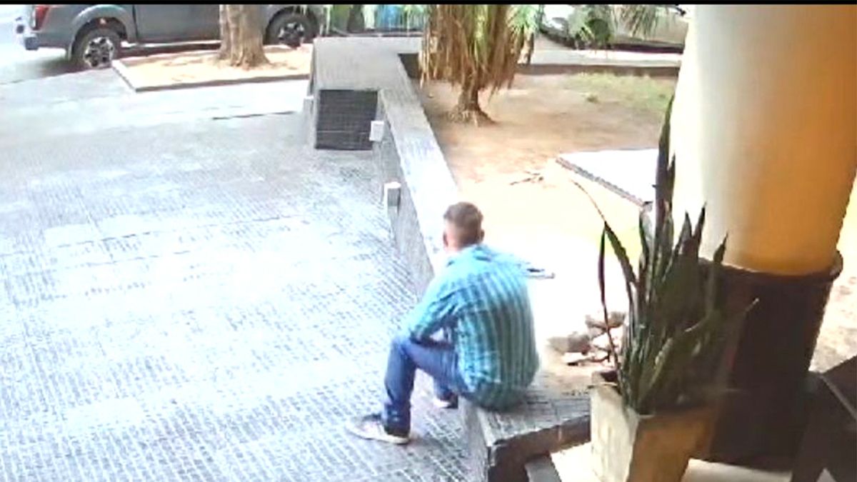 El empresario estacionó alrededor de las 18.03, a los pocos segundos se observa un sujeto que se sienta en la puerta de un edificio y habla con una persona, que sería su cómplice, por lo que a las 18.18 se sube a la camioneta, que había quedado con las puertas sin llaves, la pone en marcha para llevarse la Nissan Frontier, modelo 2022, con total impunidad.