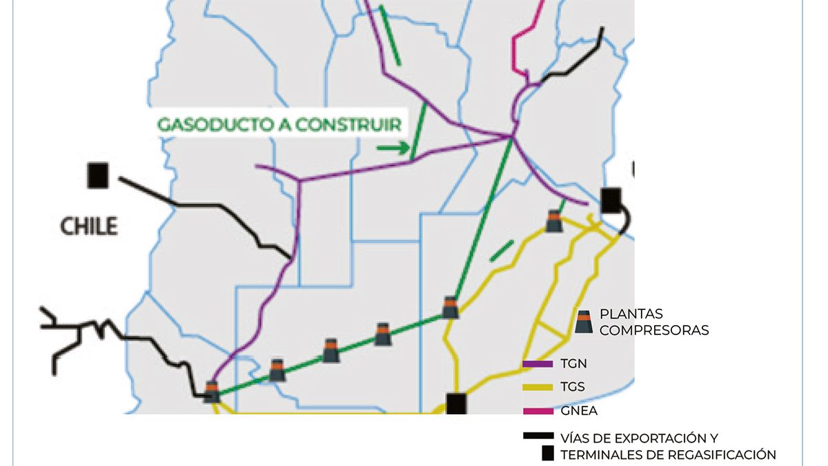 Hasta aquí, el tendido del Gasoducto Presidente Néstor Kirchner (GPNK) permite que se transporten 11 millones de metros cúbicos hasta la provincia de Buenos Aires. La siguiente etapa prevé construir tres plantas compresoras en Tratayén (punto cero), Salliqueló y Mercedes (ambas en Buenos Aires). Con esa infraestructura, el volúmen escalaría a 21 millones de metros cúbicos. La tercera instancia es el nuevo tramo del gasoducto Néstor Kirchner hasta San Jerónimo más tres plantas compresoras intermedias entre las construidas en la etapa dos. Eso permitiría escalar en un transporte de 39 millones de metros cúbicos. Eso permitiría que el país pase de unos 130 millones de metros cúbicos promedio diario (con obvias oscilaciones entre verano e invierno) a casi 170 millones, lo que dejaría, con base en el consumo del año pasado, algún pico sin cubrir en los meses más fríos, para lo cual se deberá echar mano a otras fuentes. A su vez, eso arroja un saldo exportable importante en los primeros y últimos meses del año.