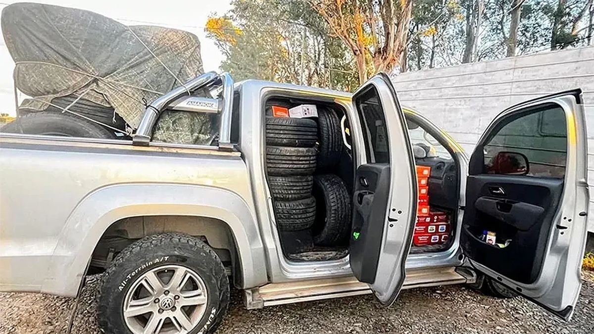Además de las cubiertas de distintas marcas y medidas, el conductor llevaba también más de 30 pares de zapatillas de diferentes marcas apócrifas, más de 40 calzas de mujer y 16 juegos de tazas de loza, entre otros elementos, valuados en unos 10 millones de pesos.