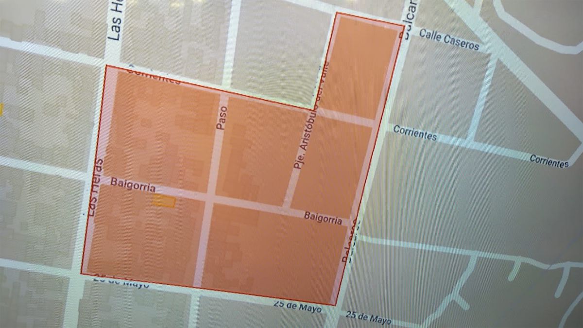 El cordón sanitario está delimitado por las calles Las Heras, 25 de Mayo, Balcarce y Corrientes.