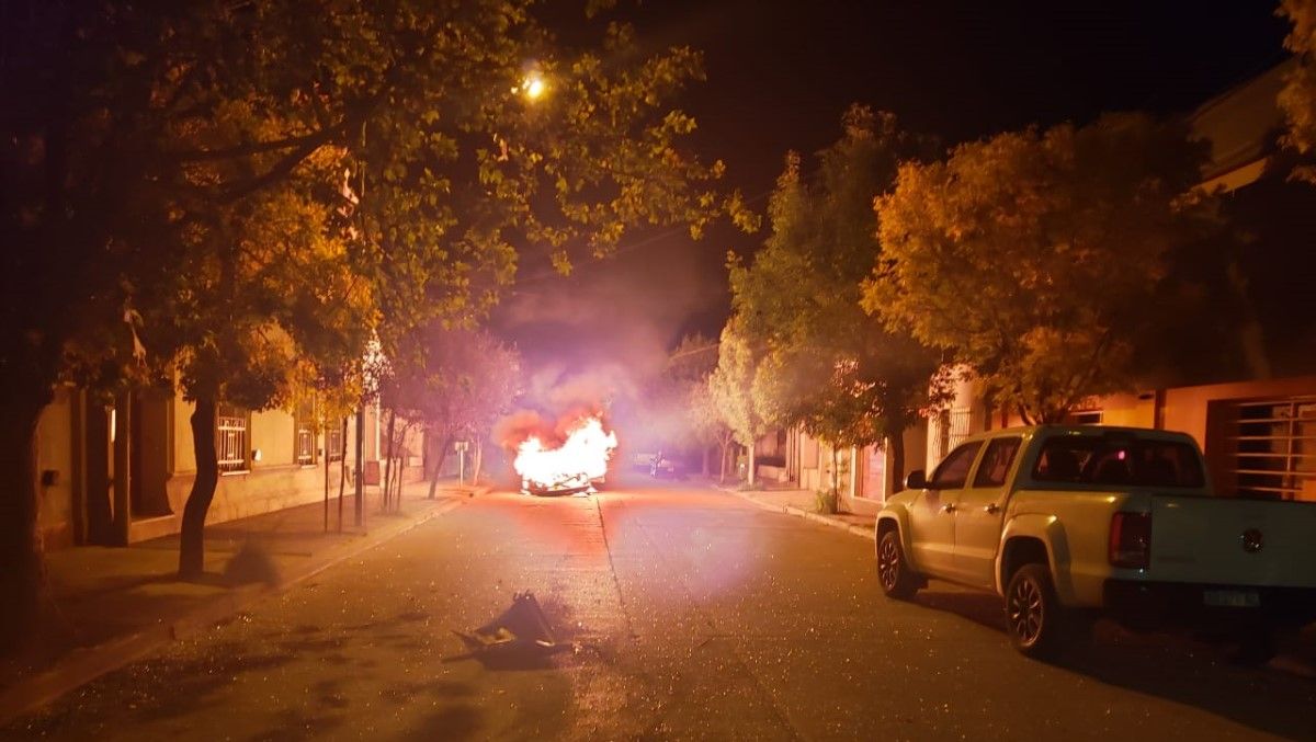 En el lugar trabajó personal policial, asistencia médica y bomberos voluntarios debido al incendio del vehículo Peugeot.
