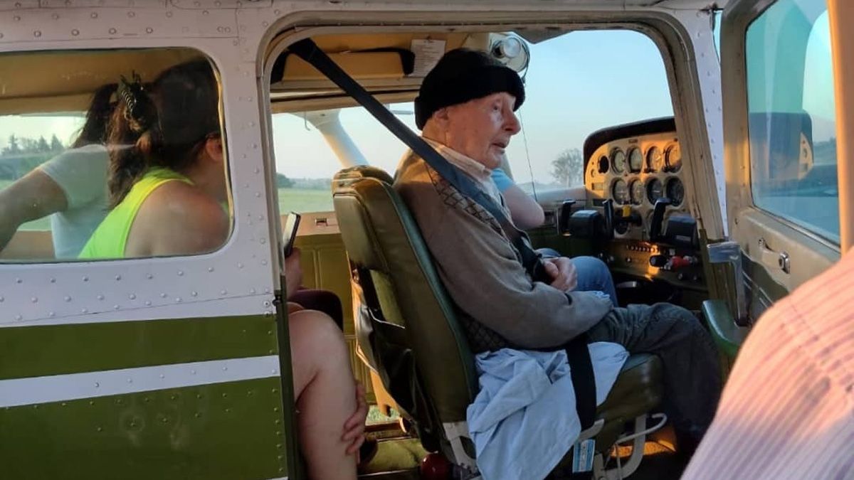 A los 94 años, Atilio Bonetto volvió a volar. El sueño pudo cumplirlo en Coronel Moldes, donde se encuentra en una residencia geriátrica y cuya responsable pergeñó el plan durante el último fin de semana.