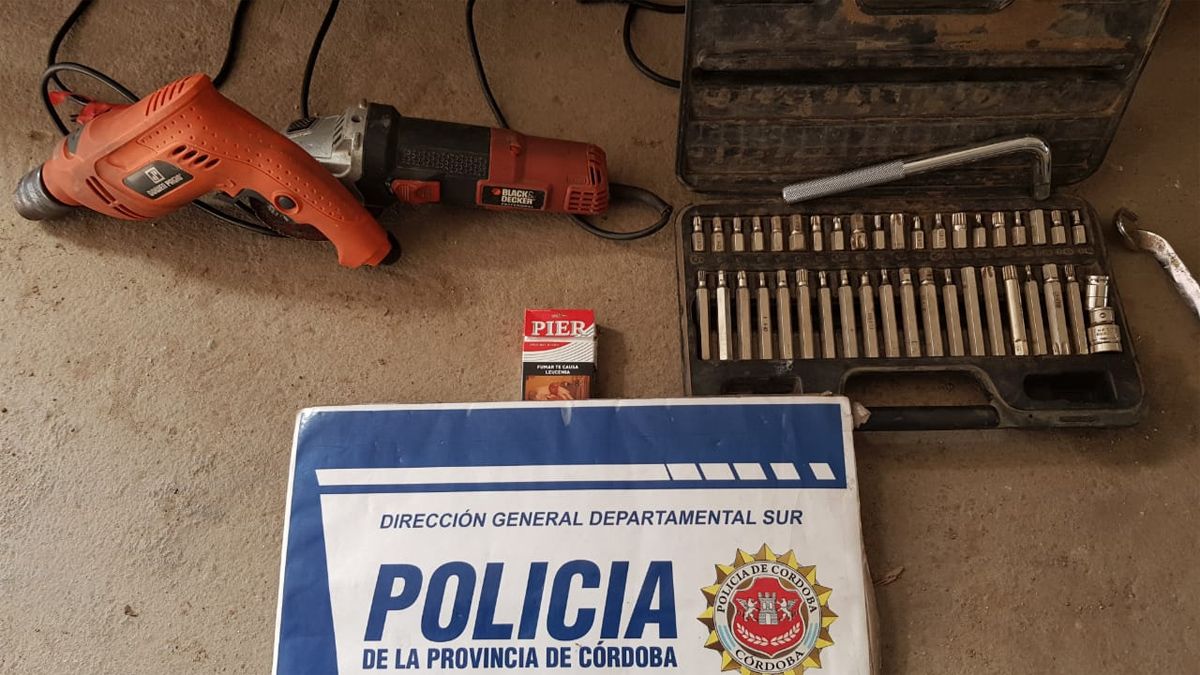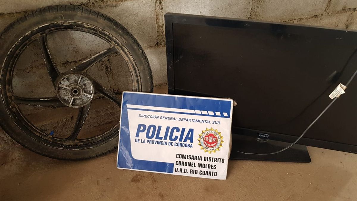 Fuentes de la Departamental Río Cuarto, además del televisor, enumeraron el secuestro de una amoladora, un taladro, una caja con llaves de mano y diferentes piezas de motos. También incautaron la motocicleta en la que se movilizaban los sujetos que intentaron frenar el allanamiento.