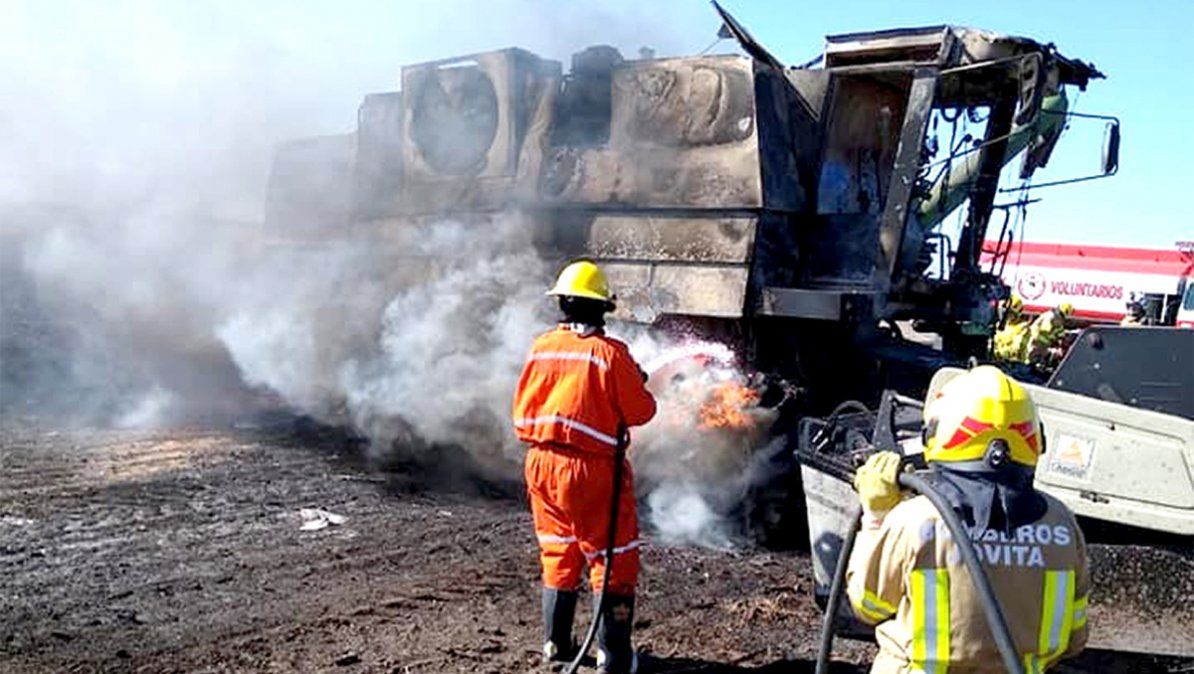 El fuego en la máquina fue controlado y afectó su estructura. También alcanzó un lote de soja, que fue controlado por los bomberos de Berrotarán.